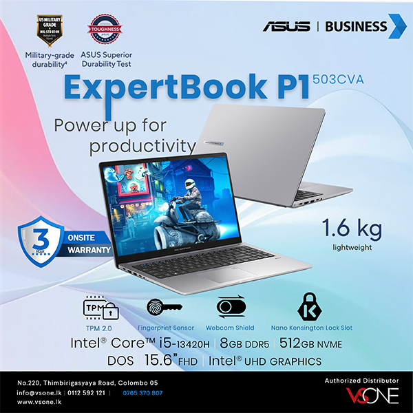 ASUS EXPERTBOOK P1 503CVA INTEL CORE I5-13420H 8GB DDR5 RAM 512GB NVME 15.6″ FHD INTEL UHD GRAPHICS (3 YEARS WARRANTY)